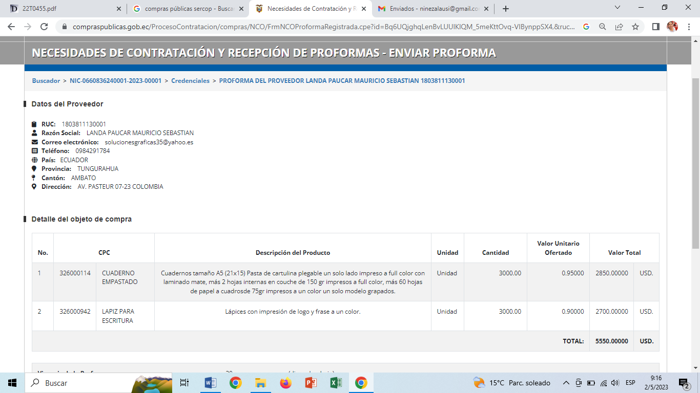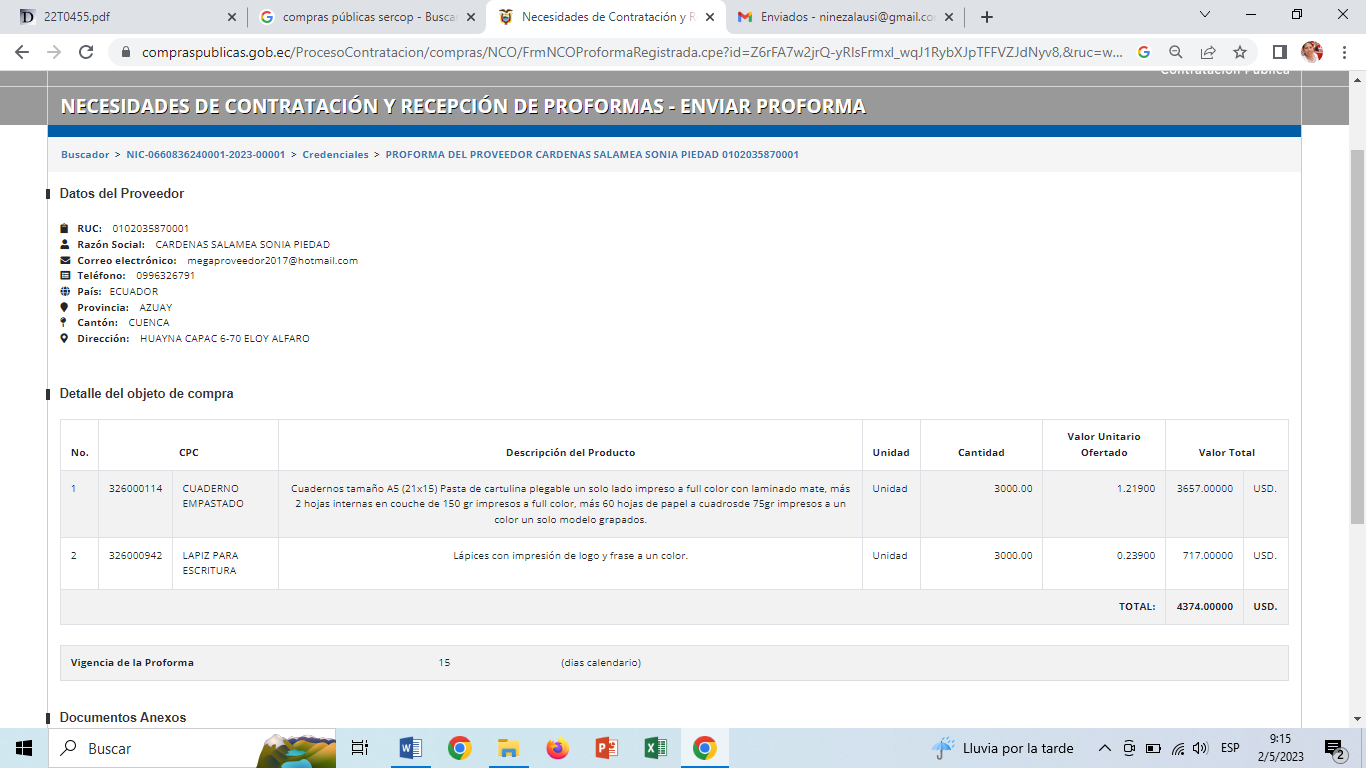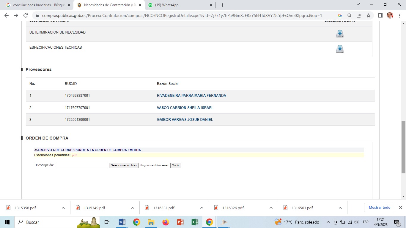 Necesidades de Contratación y Recepción de Proformas